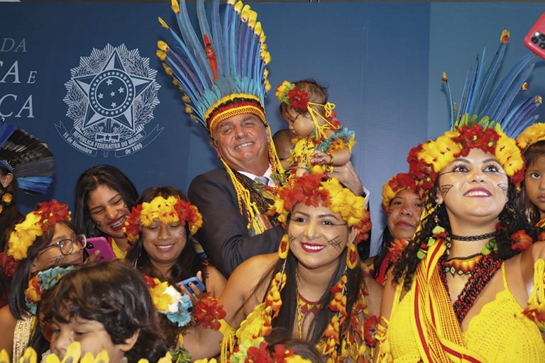 O máximo que Bolsonaro fez pelos indígenas foi fantasiar-se de cacique. Só faltou sair em um bloco de Carnaval – Imagem: Clauber Cléber Caetano/PR