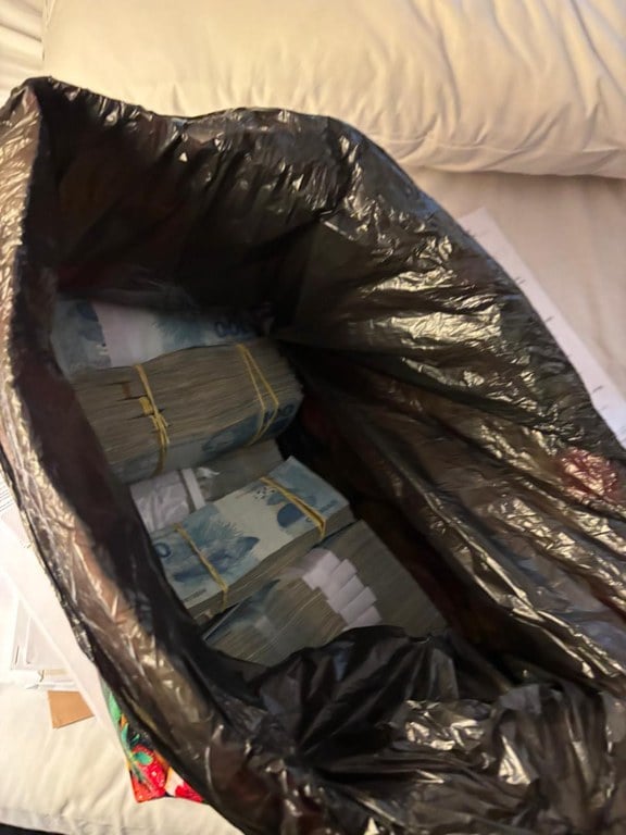 Dinheiro encontrado por agentes da PF durante a operação desta sexta – foto: divulgação/PF