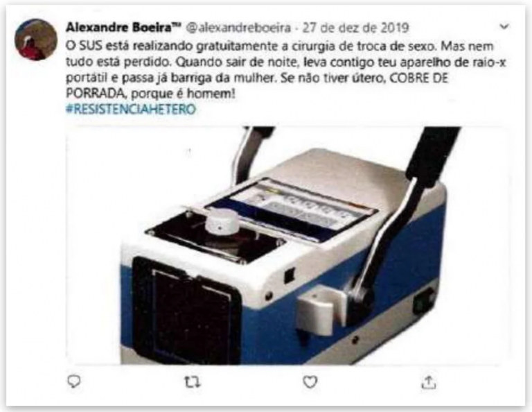 As mensagens também continham ataques transfóbicos e homofóbicos, incluindo críticas a cirurgias de redesignação sexual e incitação à violência contra pessoas trans.