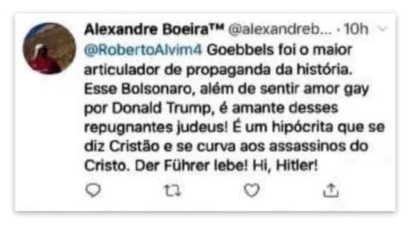 Alexandre Lopes Reis Boeira exaltou Hitler, ofendeu judeus e a comunidade LGBT em publicações no antigo Twitter