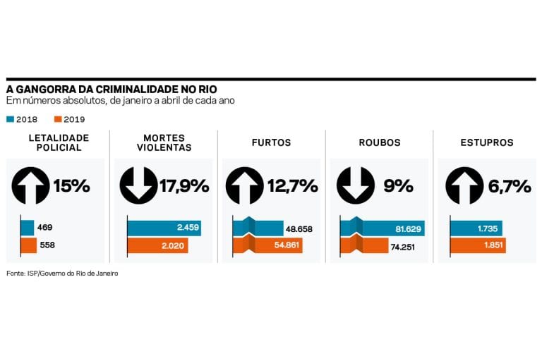 Na verdade, Witzel já fez isso. Ou quase… “Os números são claros, mostram o acerto da nossa política de segurança contra os narcotraficantes e a máfia das milícias”, afirmou o governador, em vídeo divulgado pelo Twitter. Cano observa que a evolução da violência depende muito das dinâmicas internas do próprio crime organizado. “Se as facções estão em guerra ou se acertaram uma trégua, isso tem influência”, diz o especialista. “Mas não tenho dúvidas de que, a médio e a longo prazo, o aumento da letalidade policial resultará em mais violência. Ela reforça a lógica do confronto e coloca em risco os próprios policiais, mais vulneráveis ao revide dos criminosos.”