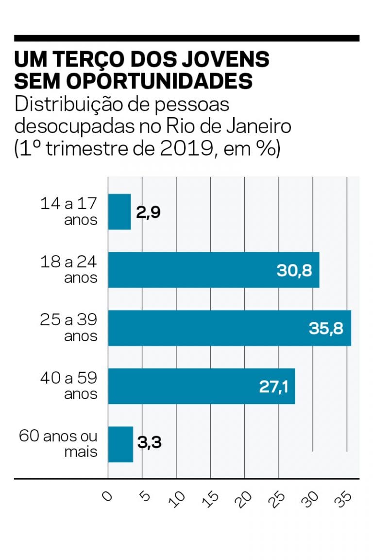 Ainda assim, o cenário é tormentoso. No primeiro trimestre do ano, o Rio bateu recorde de desemprego, segundo o IBGE. São quase 1,4 milhão de desocupados, 15,3% do total. O cenário é ainda mais grave entre os jovens, o desemprego atinge 30,8% dos trabalhadores com idade entre 18 e 24 anos. Na faixa etária dos 25 aos 39 anos, chega a assustadores 35,8%. É o cenário perfeito para o crime organizado arrebanhar novos soldados.