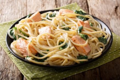 2. Espaguete com salmão e espinafre