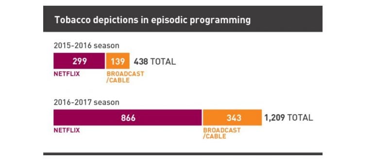 Um estudo da Truth Initiative publicado em 2019 apresentou uma forte crítica à Netflix, já que muitos dos conteúdos contêm uma quantidade preocupante de cigarros em cena nas séries mais populares entre os jovens de 15 a 24 anos.
