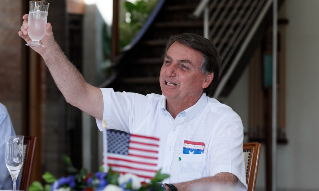 Presidente Jair Bolsonaro em almoço na casa do embaixador americano no Brasil, 2 dias antes da confirmação de que estava com coronavírus. (Foto: PR/Flickr)
