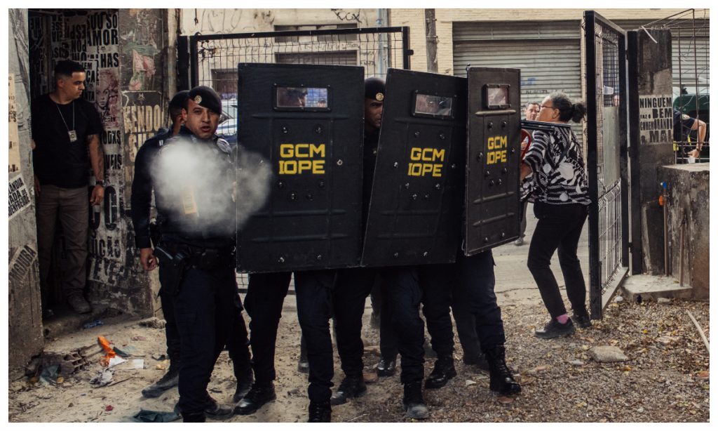 Agentes da GCM durante ação de reintegração no Teatro de Contêiner. Créditos: Luca Meola