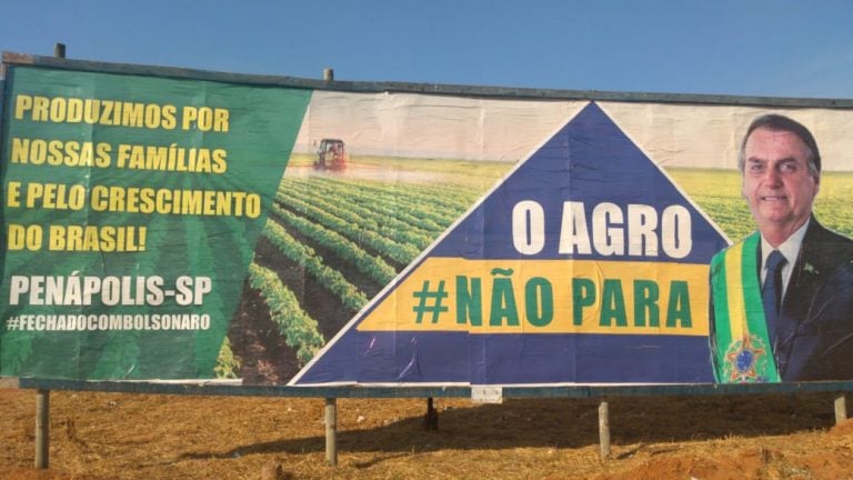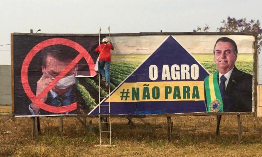Bolsonaristas colocam fogo em outdoor contrário ao presidente no interior de SP