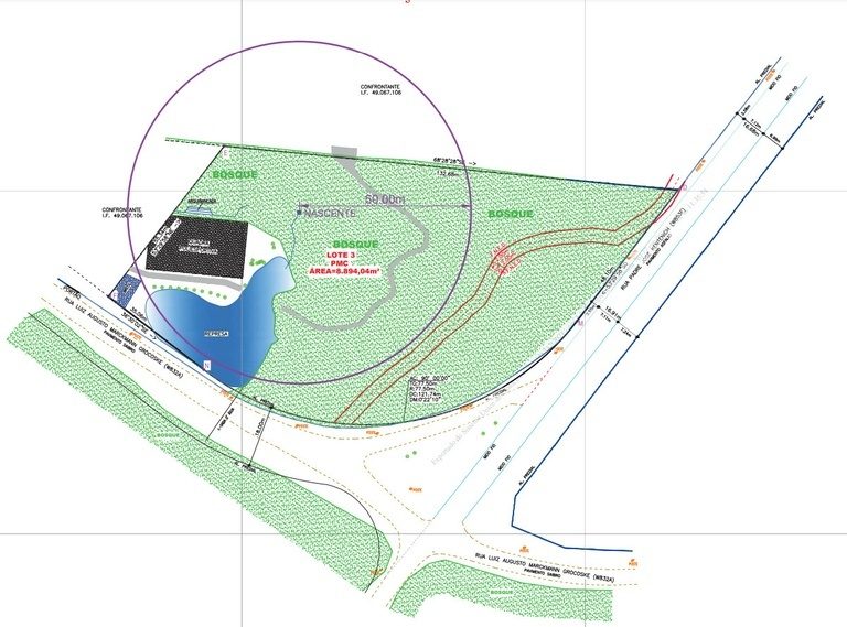Imagem do laudo da prefeitura que mostra – em preto – a quadra construída ilegalmente no terreno público.