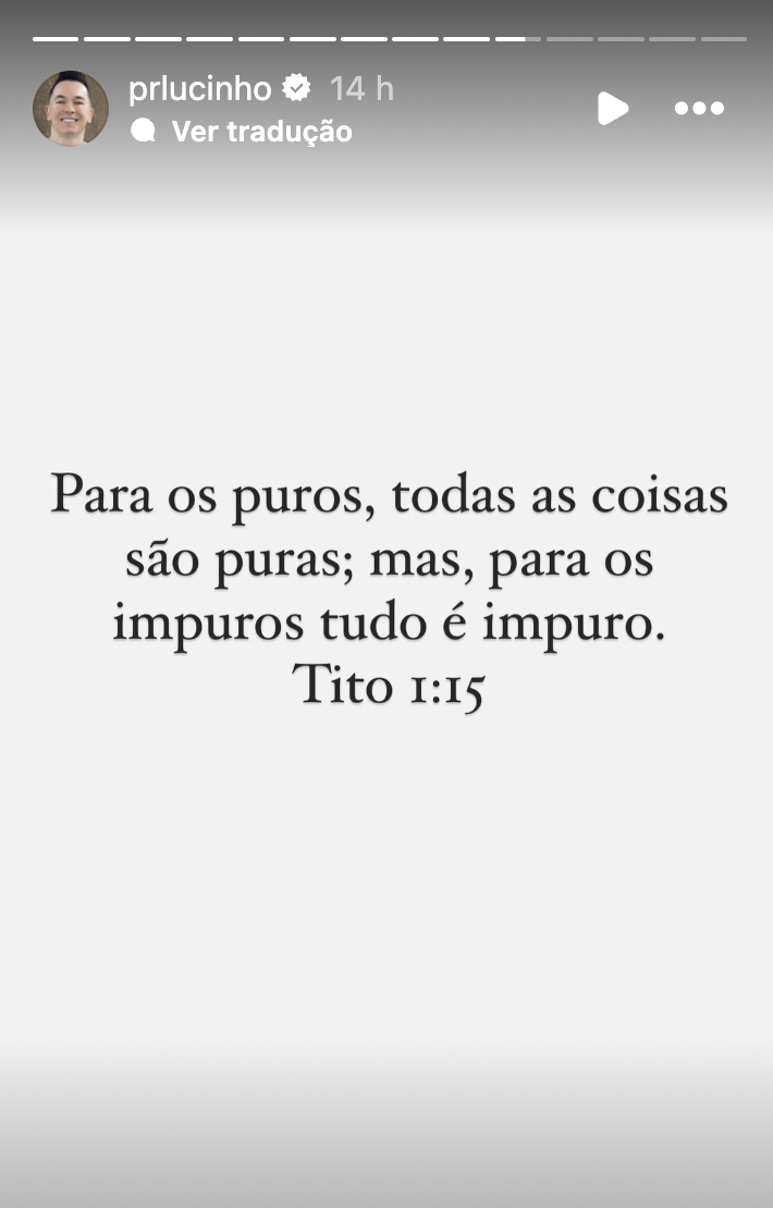 Na sequência da fala, o pastor fez referência a uma passagem bíblica e disse que “quem tem mente suja, pensa coisa suja”. Nesta sexta-feira 3, após a repercussão, ele voltou a citar o versículo.