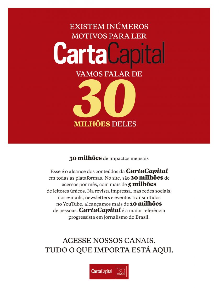 CartaCapital não tem o apoio de bancos e fundações. Sobrevive, unicamente, da venda de anúncios e projetos e das contribuições de seus leitores. E seu apoio, leitor, é cada vez mais fundamental.