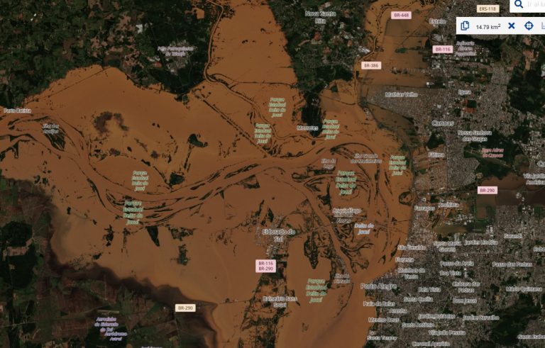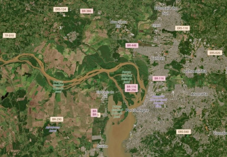 Imagens de satélite mostram proporções devastadoras do avanço das águas no delta do Jacuí e Grande Porto Alegre