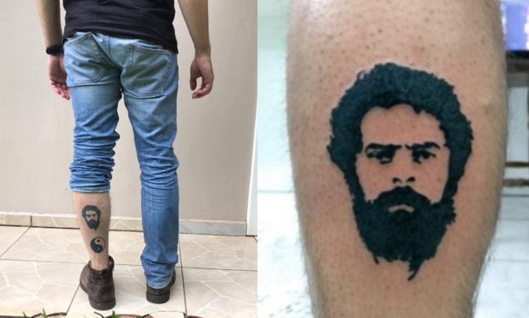Mas não só no grito ficaram as manifestações. É o caso do empresário de Santa Catarina, Marcos Vinicius Zanella. O militante de 29 anos resolveu homenagear seu ídolo político de uma maneira inusitada: tatuando o rosto de Lula em sua perna.