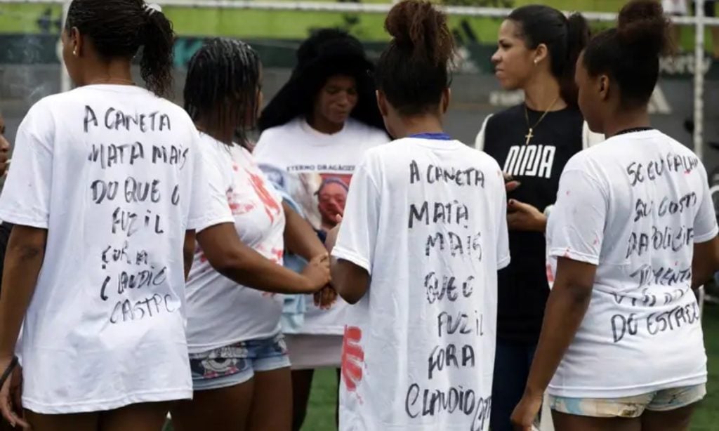 Quem também participa da manifestação é Adriana Santana de Araujo, mãe de Marlon Santana de Araujo, um dos 28 mortos durante uma operação no Jacarezinho, em 2021, que figurava como a mais letal do Rio antes da realizada nesta semana.
