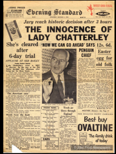 Lady Chatterley serviria de teste de fogo da recém-aprovada legislação e, curiosamente, um dos focos da defesa – e um dos aborrecimentos da acusação – foi o seu appeal democrático e popular. A editora Penguin ousou acreditar na nova era e publicar, em agosto de 1960, uma edição integral, sem expurgos, da exilada obra de D. H. Lawrence. A Penguin já se especializara em livros de bolso de alta tiragem. Aquele iria custar 3 shillings e 6 pence (12 pence faziam 1 shilling, 20 shillings, 1 libra) – uma pechincha. Esperava-se a pororoca, mas a obra foi provisoriamente embargada com base no Act que viera, por ironia, emancipar a literatura das amarras da intolerância e da ignorância.