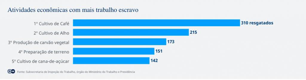 Entre as cinco atividades econômicas com maior ocorrência de trabalho análogo ao de escravo, todas estão ligadas à produção agrícola e agropecuária, segundo dados do MPT.