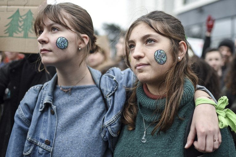 Jovens protestantes em Nantes, França. (Foto: Sebastien SALOM-GOMIS / AFP)