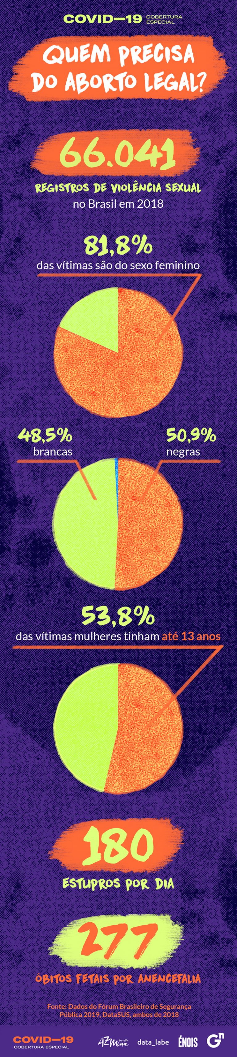 A violência física e sexual contra mulheres aumentou durante o isolamento social provocado pelo coronavírus. O número de feminicídios cresceu 22% em 12 estados brasileiros nos meses de março e abril, segundo um levantamento do Fórum Brasileiro de Segurança Pública. Em 2018, o país registrou 180 estupros por dia e 81% das vítimas eram mulheres, segundo dados do Anuário Brasileiro da Segurança Pública publicado pelo mesmo Fórum.