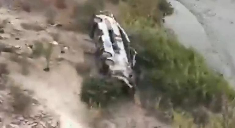 O veículo caiu de um penhasco e capotou por pelo menos 200 metros