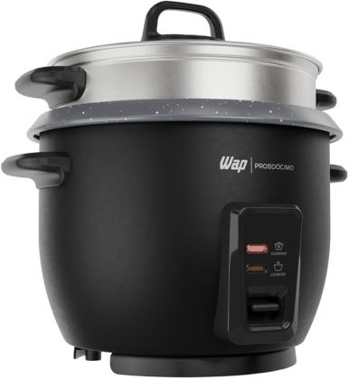 Para quem busca robustez e eficiência, a WAP Panela de Arroz Elétrica WRC1000 é a escolha ideal para integrar a rotina. Com uma potência de 700W, ela garante agilidade no preparo e possui uma grande capacidade para até 10 copos de arroz, atendendo tranquilamente a toda a família. O modelo destaca-se pela sua função “Manter Aquecido”, que é acionada automaticamente após o término do cozimento, mantendo o alimento na temperatura ideal para servir por muito mais tempo.